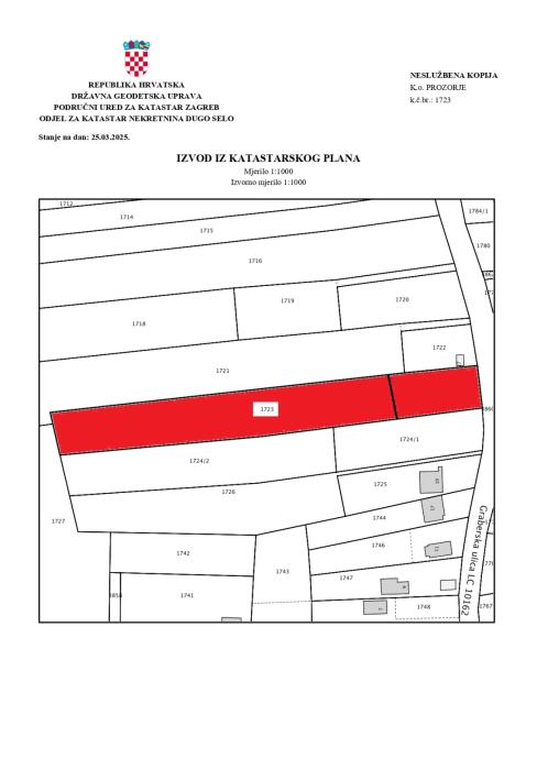 Na prodaju ½ vlasništva/suvlasništva parcele u Dugom Selu, Martin Breg, Graberje, katastarska općina 308170, Prozorje.