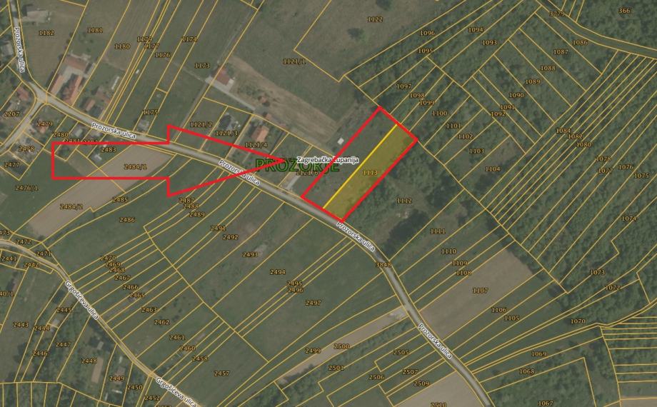 Prodaje se Građevinsko zemljište, DUGO SELO, Prozorje, 6811 m2, kčbr 1113 i 1114 KO. PROZORJE uz asvaltiranu prozorsku ulicu udaljeno cca 1800 m od glavne Dugoselske ulice, sastoji se od dvije čestice širine 25m (ukupno 50m ) x cca 135m, cca 4000 m2 je u građevinskoj zoni ostalo poljoprivredno, kompletno zemljište je ograđeno kvalitetnim betonskim zidom-ogradom, na zemljištu postoji priključak trofazne struje, na cesti ispred je vodovod i plin, pogodno za razne poslovno stambene namjene sa velikim prostorom za parkiranje ili otvoreno skladište.