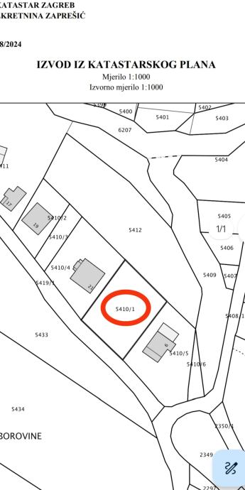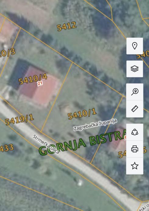 Prodajem građevinsko zemljište u Gornjoj Bistri, Zagrebačka županija, površine 691m2 pravilnog oblika (do ceste širine cca 23m i u dubinu cca 30m), katastarska čestica br. 5410/1, vlasništvo 1/1 i bez tereta.