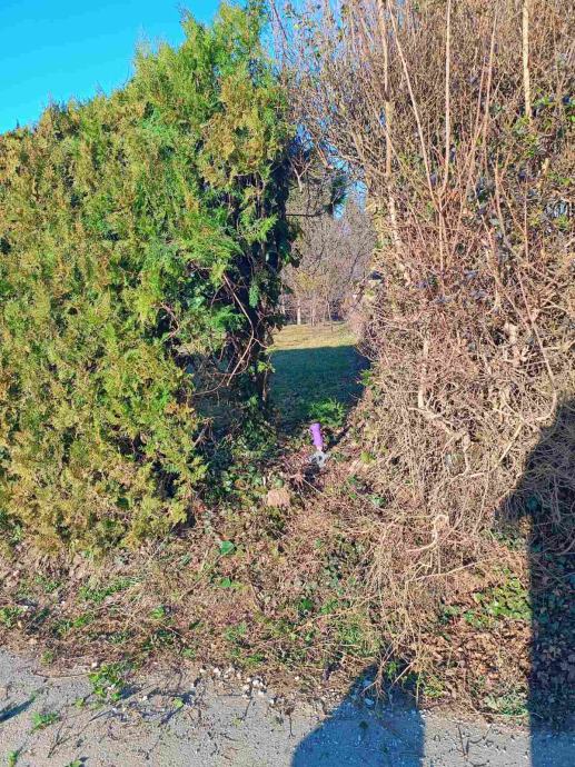 Ukoliko budete posjećivali zemljište, napravili smo pješački ulaz kroz tuje do ceste, na gornjoj strani prema ogradi od gornjih susjeda, a vi si kasnije odredite gdje želite da vam bude ulaz na zemljište.