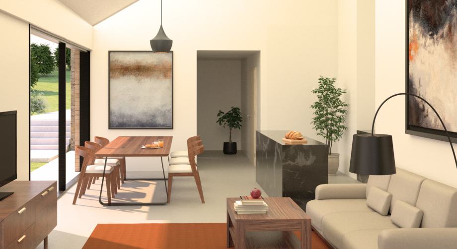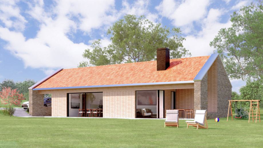 Napravljen je idejni projekt i ishodovani posebni uvjeti za gradnju moderne obiteljske kuće s 3 spavaće sobe, koji se po želji može iskoristiti.