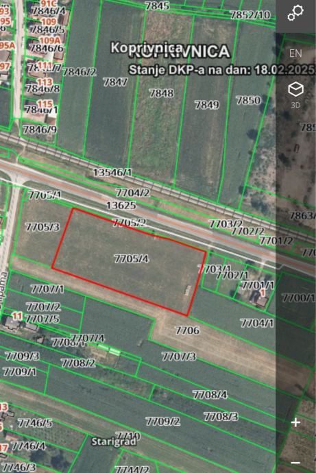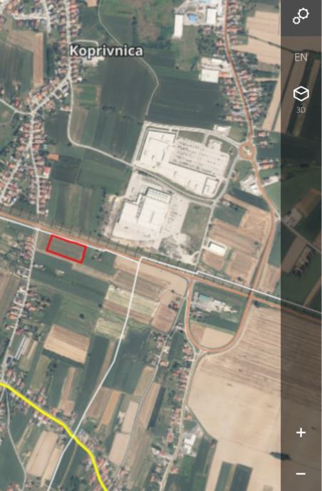 Građevinsko zemljište u vlasništvu d.o.o.-a, veličine 6982 m2 (pravilan oblik parcele s cca 140m kontakta s gradskom zaobilaznicom, ogranicenje brzine samo 60km/h), isto je K namjene (gospodarska odnosno trgovačka namjena). Svojom pozicijom, oblikom i namjenom zemljište je odgovarajuće za gradnju benzinke postaje, trgovačkog centra, logističkog centra itd. Zemljište je jedino takvo na zaobilaznici, a nalazi se nekoliko stotina metara zračne udaljenosti od Supernova centra, Pevexa, Emmezete... odnosno glavne trgovačke zone u Koprivnici. Promet na predmetnoj poziciji je iznimno gust (9300 vozila dnevno) s obzirom da osim lokalnog prometa predmetnom cestom prometuju i svi oni koji idu iz smjera Zagreba i Varaždina prema Bjelovaru, Virovitici i Slavoniji u cjelini (i obrnuto). Dodatno, “iznad” zemljišta i oko njega nalaze se prigradska naselja s cca 5tis stanovnika.