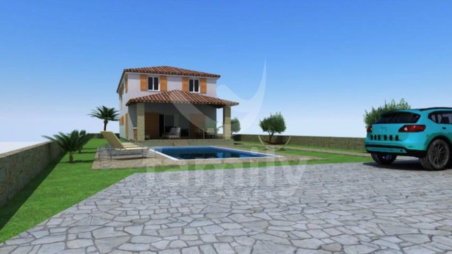 Građevinsko zemljište sveukupne površine 784 m2 se nalazi u jednom mirnom naselju u sklopu općine Barban. Zemljište je pravokutnog oblika s blagim nagibom i izravnim pristupom s asfaltirane ceste. Spomenuto zemljište posjeduje glavni projekt i pravomoćnu građevinsku dozvolu za slobodnostojeću vilu sa bazenom koja bi se sastojala od prizemlja i prvog kata. Prizemlje se po projektu sastoji od otvorenog koncepta dnevnog boravka sa kuhinjom i blagovaonicom, iz koje se izlazi na prostranu terasu, toaleta, spavaće sobe sa vlastitom kupaonicom, ostave, hodnika te stepenica koje bi vodile do prvog kata ove prekrasne buduće vile, a na kojem bi se našle još tri spavaće sobe sa vlastitim kupaonicama i lođa. Okućnica bi podrazumijevala bazen sa sunčalištem i dovoljnim brojem parkirnih mjesta. Prednost ovog zemljišta jesu plaćene komunalije struja i voda, a nekretnina je u vlasništvu tvrtke i u sustavu PDV-a te je cijena izražena bez istoga.