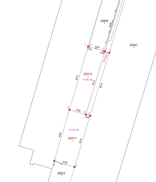 Moguća je parcelacija na dvije parcele od cca. 950 m2.