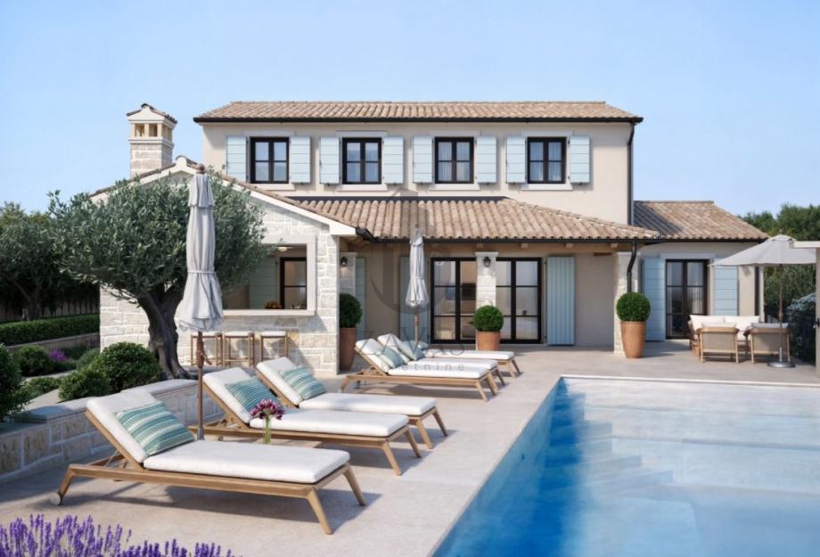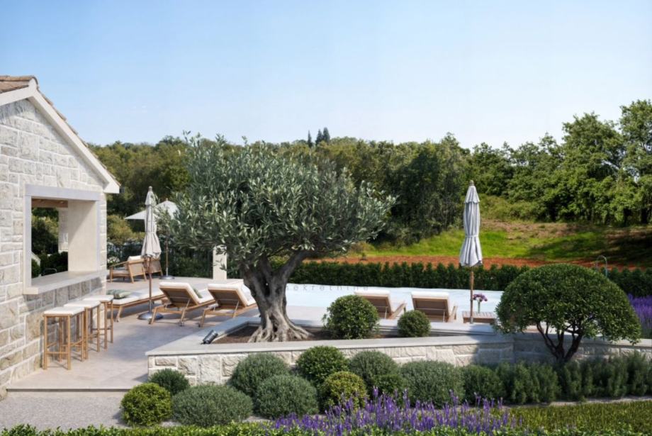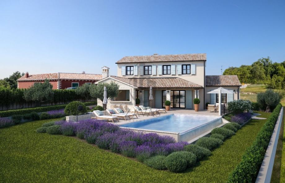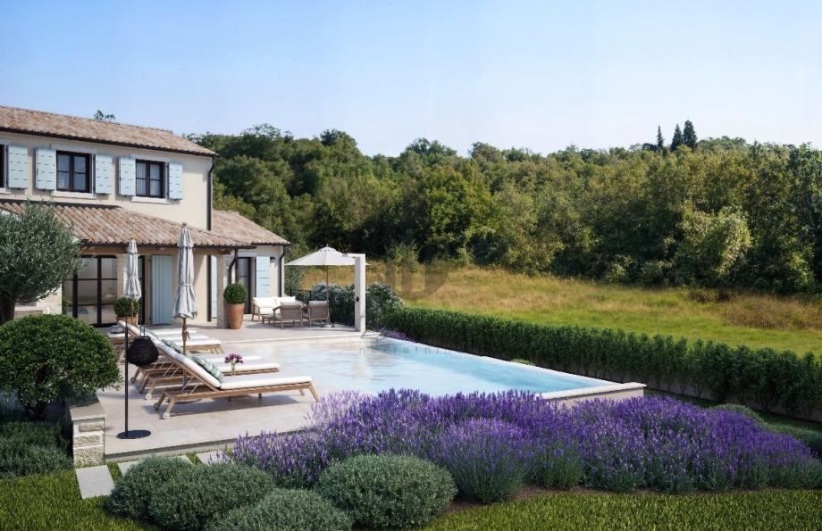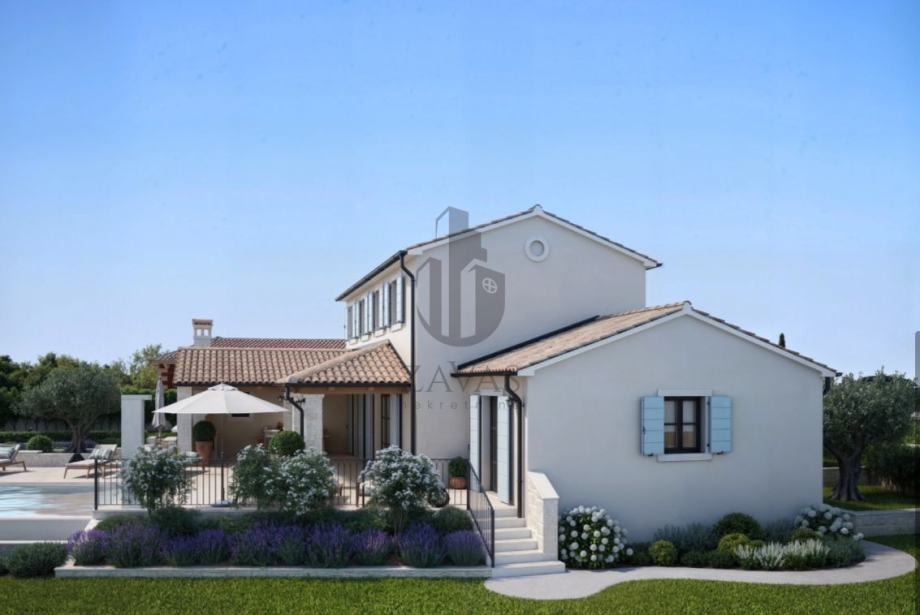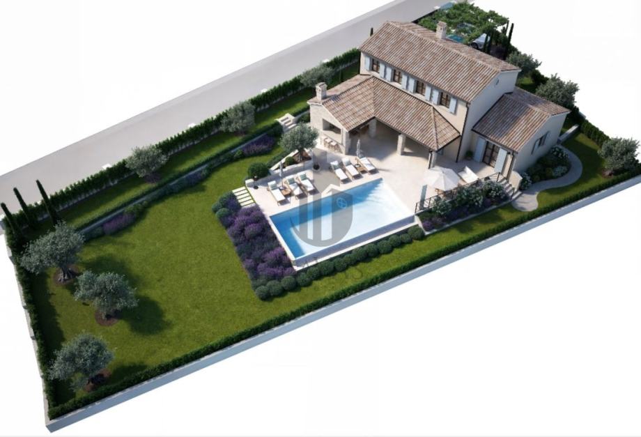 Na prodaju građevinsko zemljište 964 m² u Svetom Lovreču, Istra, s dozvolom i projektom za vilu 169 m² s bazenom.