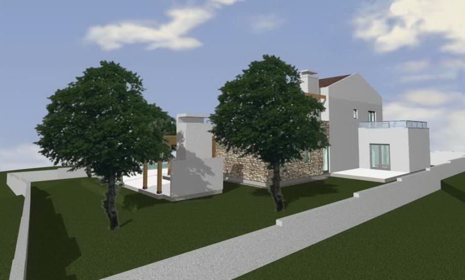 Prodaje se građevinsko zemljište od 980 m2 sa gotovim projektom i pravomoćnom građevinskom dozvolom u Smolicima pored Višnjana.