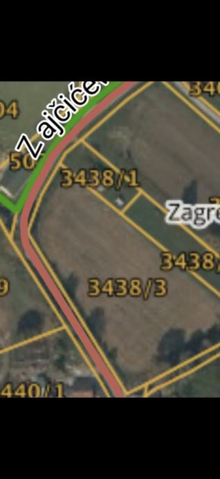 Prodaje se zemljište u stambenoj zoni,uz cestu su struja,voda,plin i gradska kanalizacija, moguca prenamjena u građevinsko zemljište.