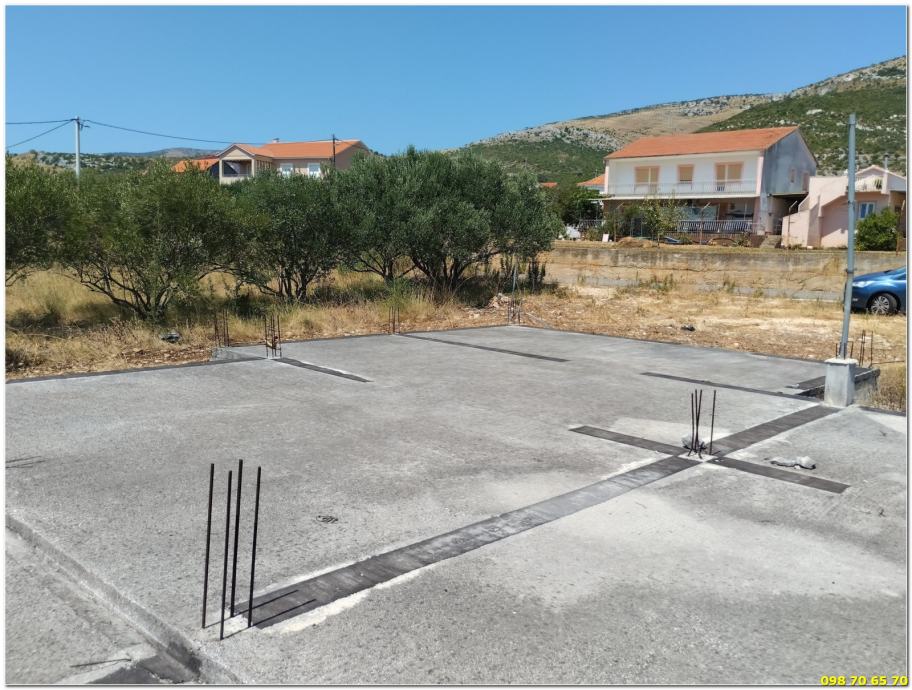 Na parceli je već izgrađena temeljna ploča od 150 m² – spremna za gradnju kuće, apartmana ili poslovno–stambenog objekta.