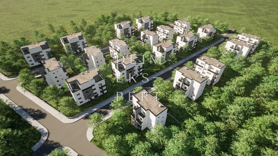 Za zemljište je izrađen Arhitektonski elaborat izgradnje 20 višestambenih zgrada sa ukupno 160 stanova (garsonijere, dvososbni, dvoiposobni, trosobni i četverosobni stanovi).