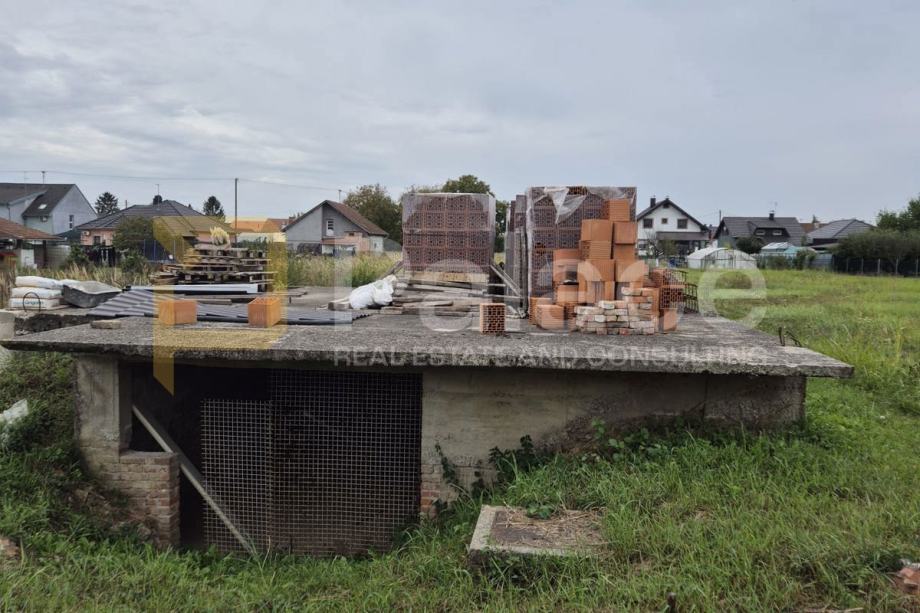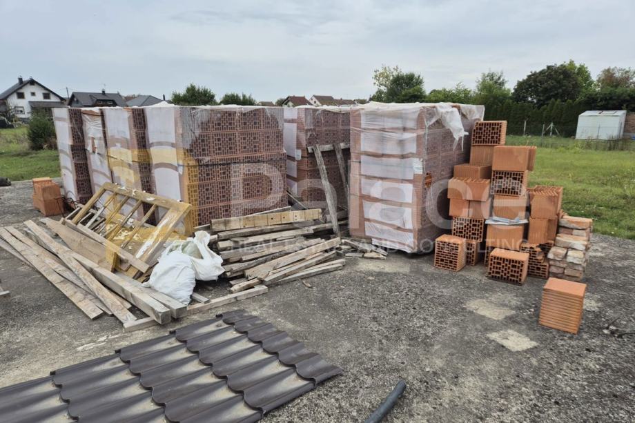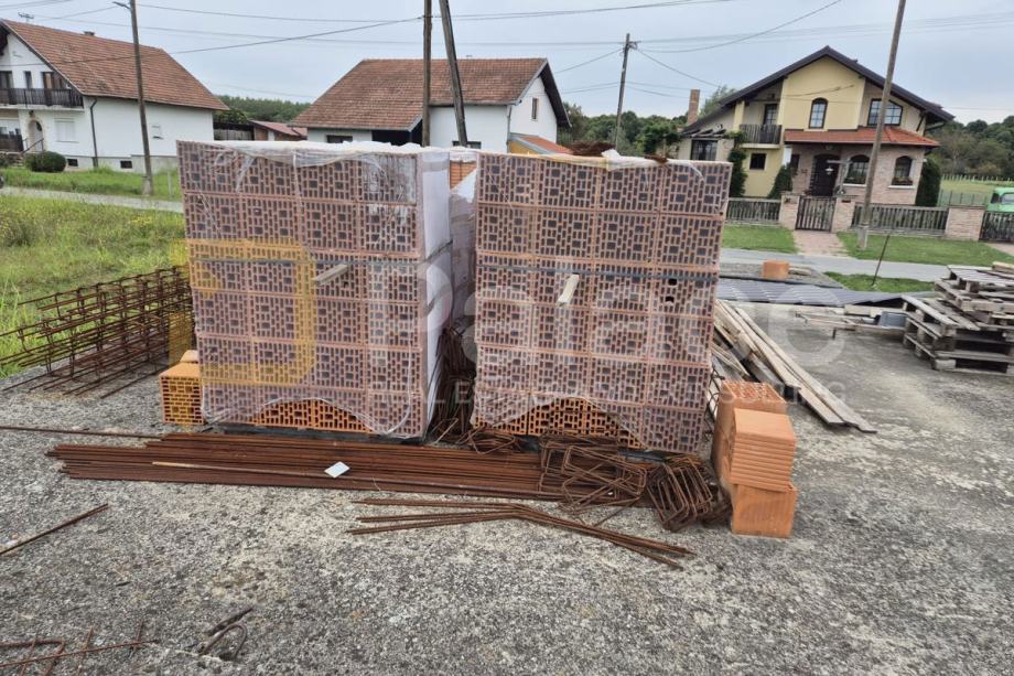 Na zemljištu je započeta gradnja te je izrađen podrum. U ulici je dostupna sva infrastruktura, a na zemljištu je napravljen priključak vode i struje. Uz zemljište uključen je i materijal vidljiv na slikama.