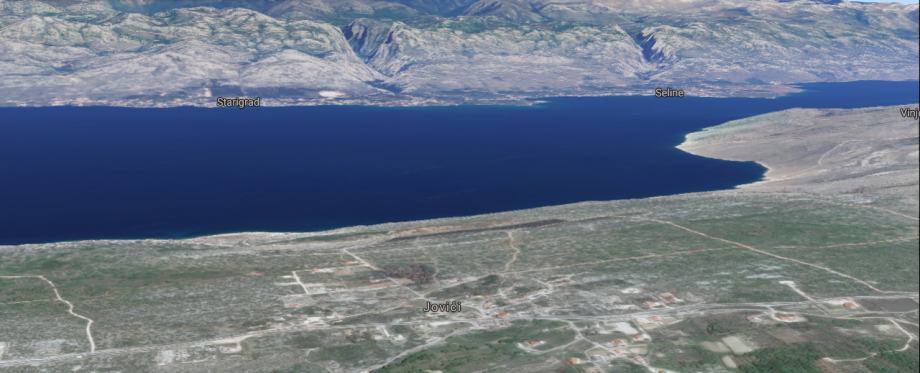 Parcela je na blagoj padini, a s iste se prostire prekrasan panoramski pogled na more (s kata) i Velebit.