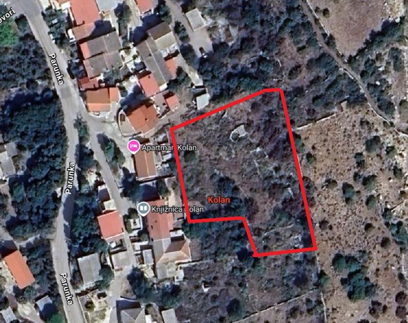 Prodaje se građevinsko zemljište površine 2171 m2 u centru Kolana na otoku Pagu.