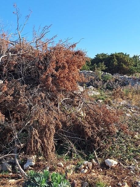 Parcela se nalazi iznad ceste Kolan-Novalja i ima pogled na more