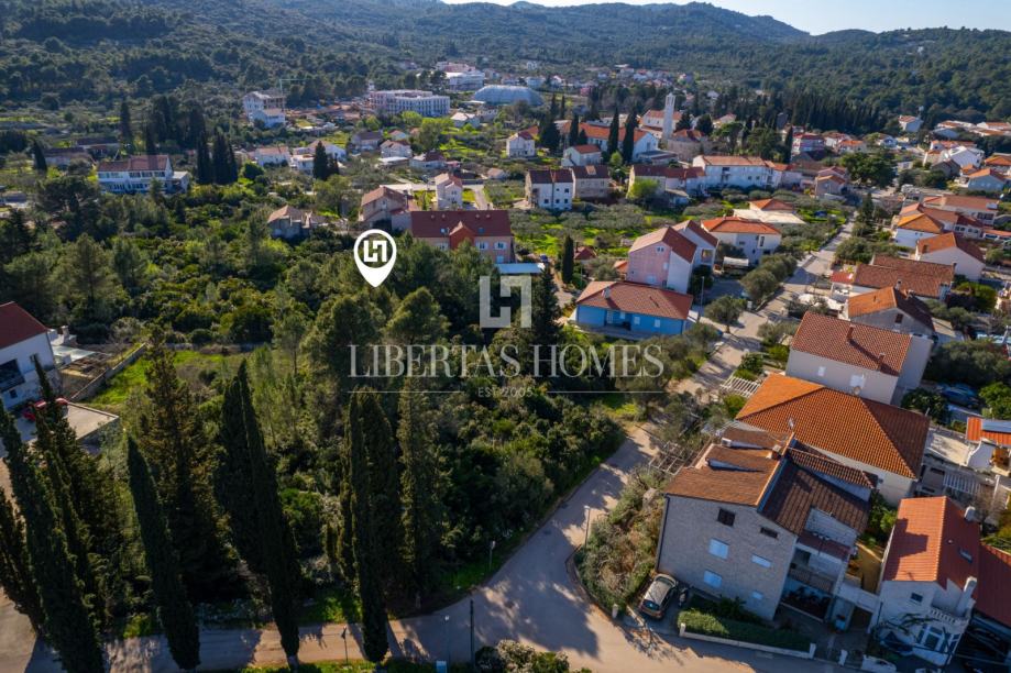 Veliko građevinsko zemljište od 1663m2 s pristupnim putom te dostupnom svom infrastrukturom nalazi se u mirnom naselju grada Korčule udaljenom par minuta autom od centra grada.