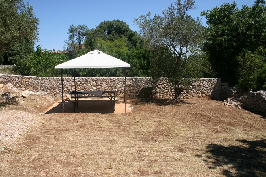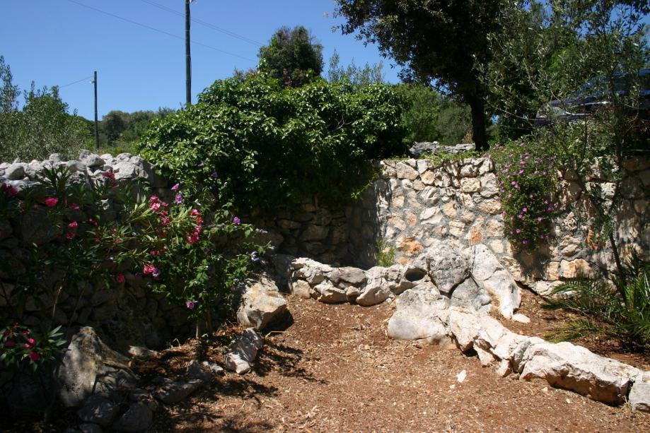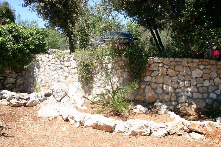 Parcela je omeđena kompletno sa svih strana velikim kamenim zidom i suhozidom.
