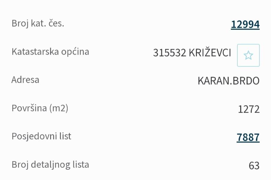 Prodajem građevinsko zemljiste u križevcima,3km od centra Križevaca u mjestu Karansko brdo,zemljiste je velicine 1272m2,sirine oko 11 metara,duzine oko 115metara,uz zemljiste prikljucak struje i vode
