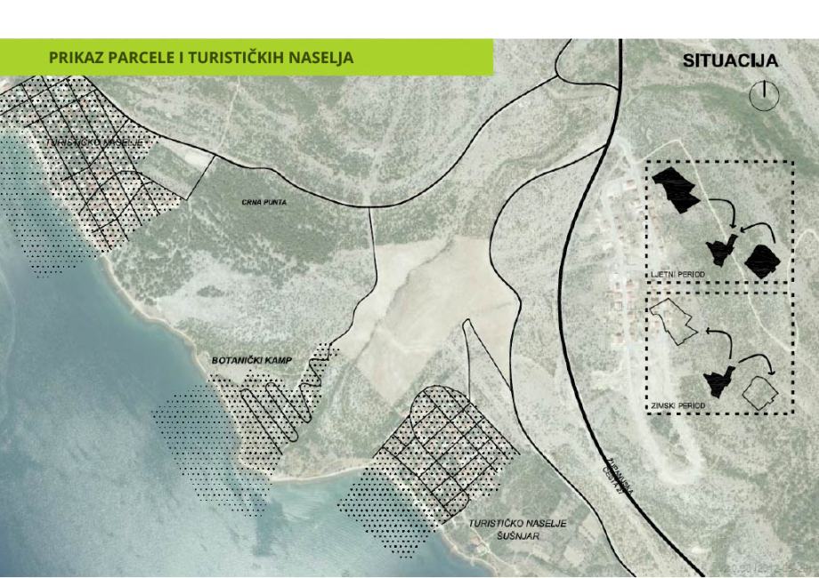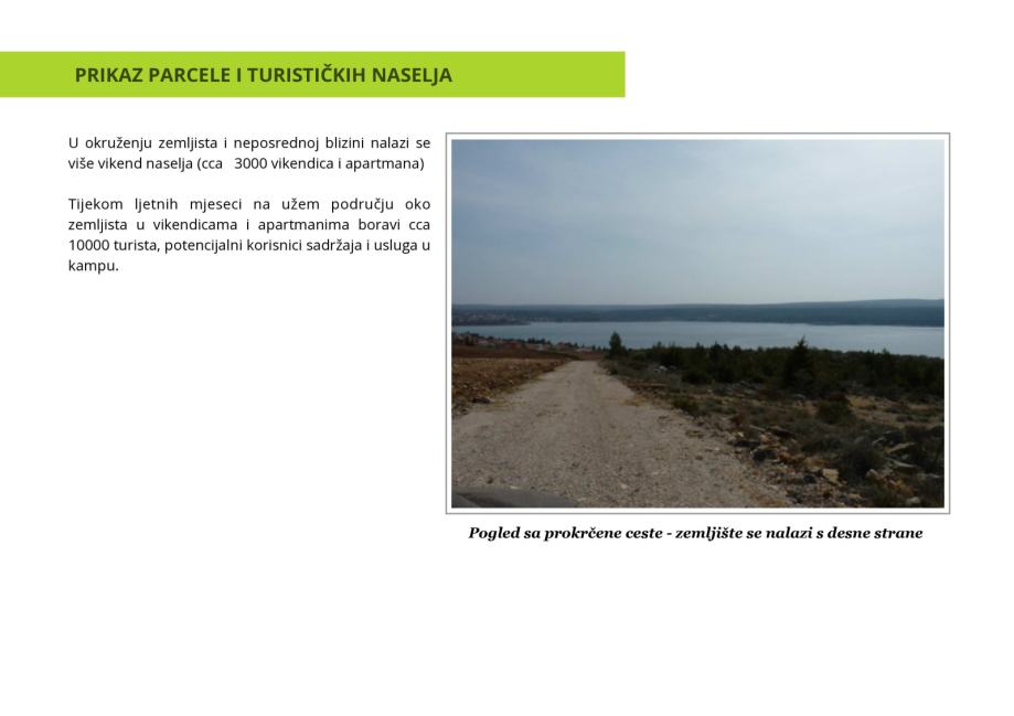 Zemljište je prirodno kaskadno tako da ima pogled sa svih pozicija, nisu potrebni dodatni troškovi za miniranje jer je teren sam po sebi kao takav pogodan za namjenu kampa.