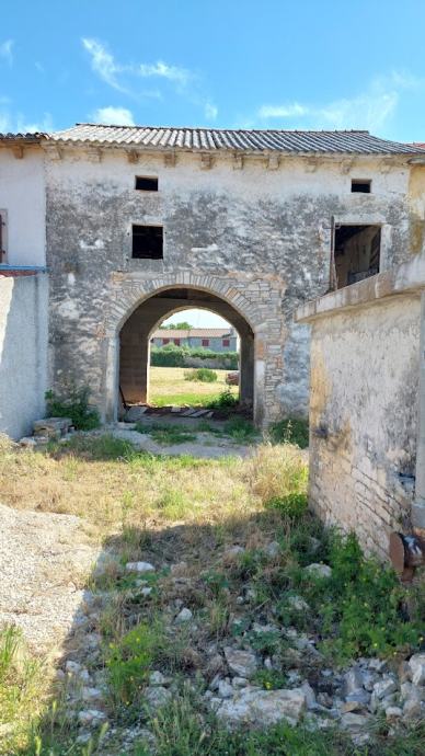 Kuća koju treba renovirati tlocrtno ima 47 m2 površine. Kroz nju ide veliki prolaz s voltama koji vodi na zemljište iza objekta.