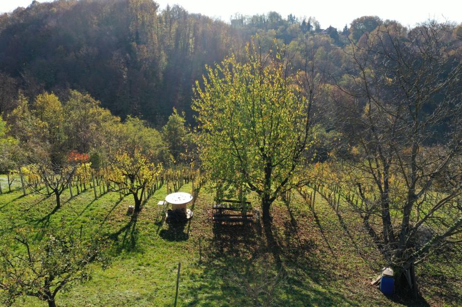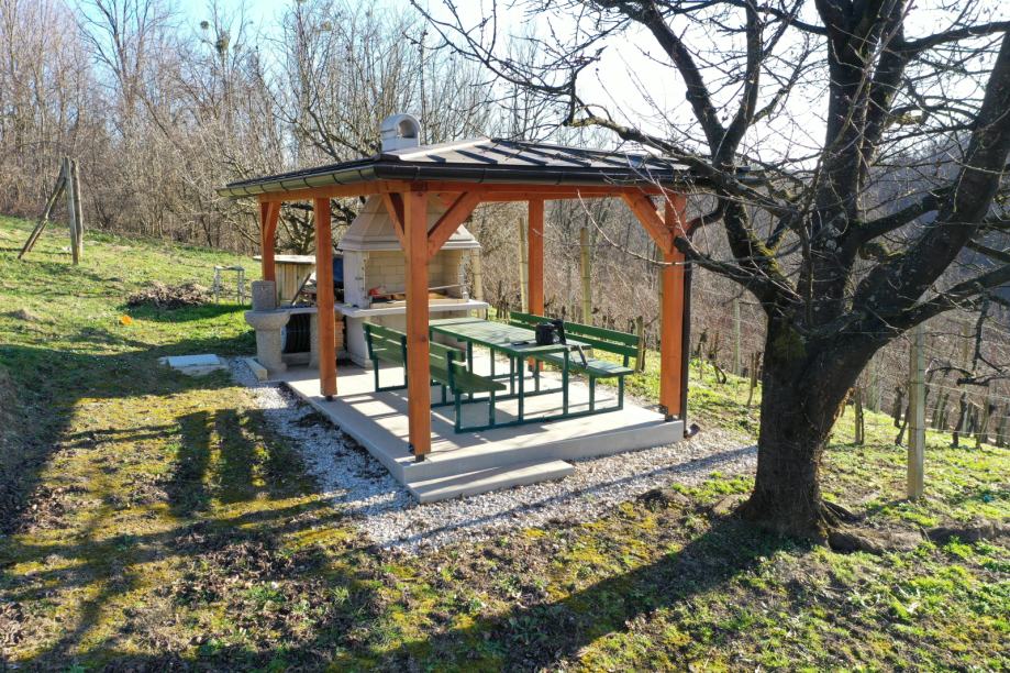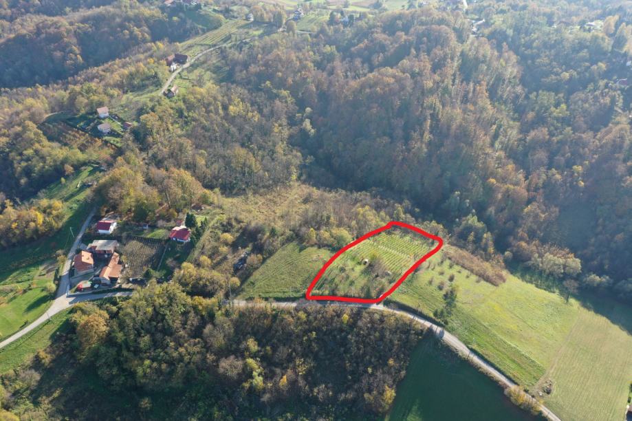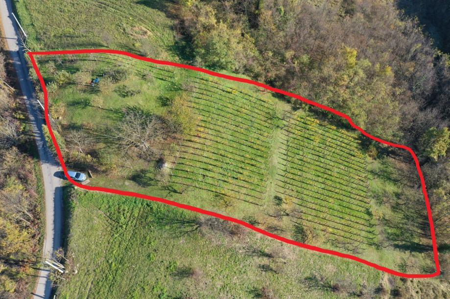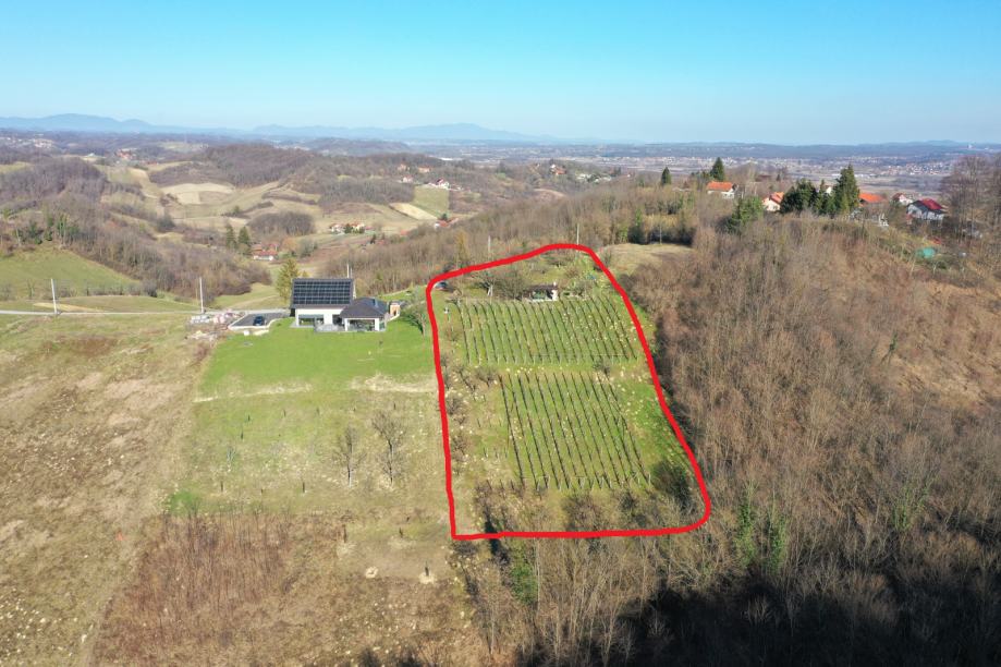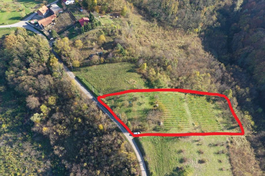 Parcela je na odličnoj poziciji, jugo-zapadna strana, sunčana lokacija, idealna za one koji cijene mir, sunce i prirodu, pravokutnog oblika, u naravi tri građevinske parcele koje čine jednu cjelinu od 4178 metara kvadratnih, dimenzija 33x140m. Parcela se nalazi uz javnu asfaltiranu prometnicu gdje se nalazi sva infrastruktura: plin, struja, optički Internet dok je na parceli izveden vodoopskrbni priključak te nadstrešnica s pečenjarom. Uz prometnicu je prirodna barijera, povišeno, što daje intimu prostoru i tišinu od prometnice. Prometnica nije prometna, jednosmjerna je i završava u šumi. Na parceli je posađeno 30-ak raznih voćaka i vinograd od 500 trsova. Uz parcelu poklanjam svu korištenu opremu za obradu vinograda, berbu grožđa i inox bačve za vino.