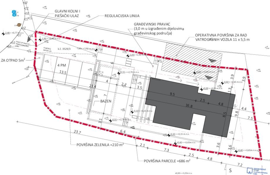 Građevinska dozvola, plaćeni komunalni doprinosi, mogućnost gradnje Pr+Kat.