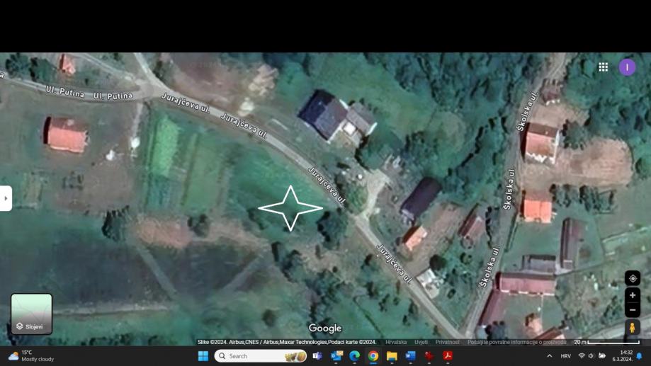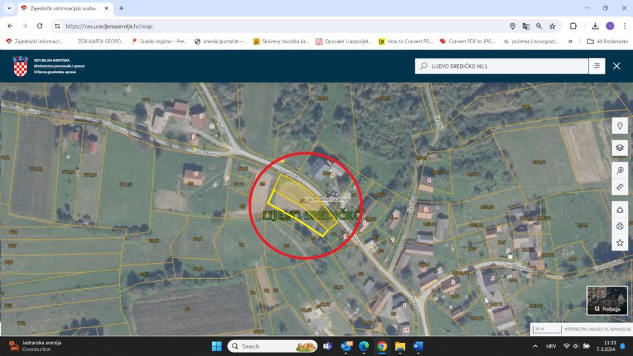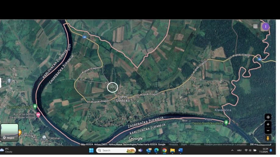 PRODAJU SE dvije spojene čestice ukupne površine 830 m2 UNUTAR GRANICA IZGRAĐENOG GRAĐEVINSKOG NASELJA Lijevo Sredičko u JURAJČEVOJ ULICI nasuprot kućnog broja 4 -koordinate čestice uz ulicu:
