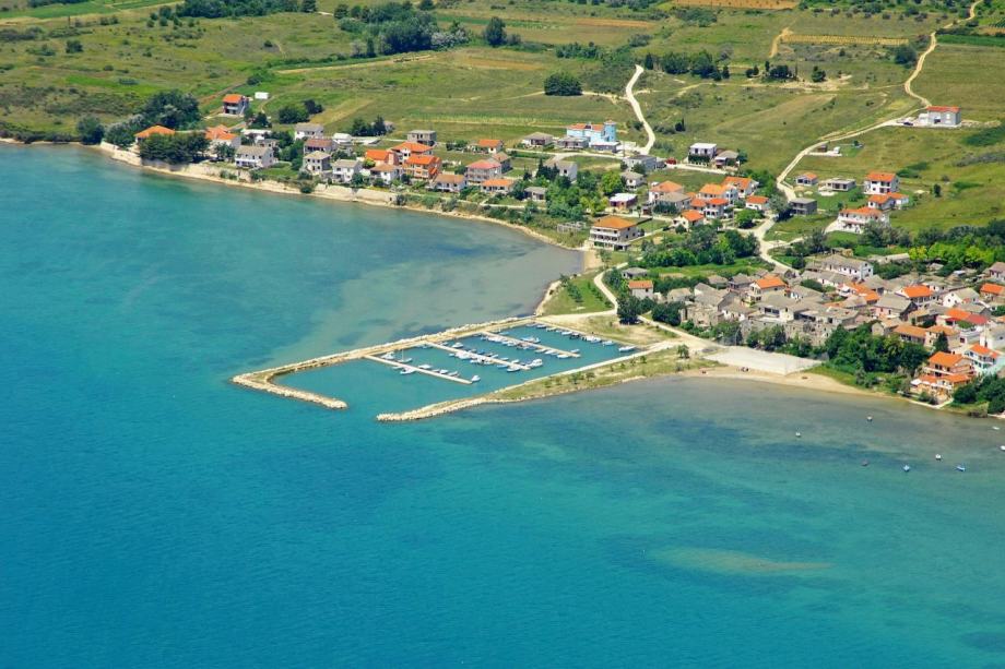 Od mora, odnosno predivne pješčane plaže, je udaljeno samo 200 m. To je velika i plitka pješčana uvala, sa ljekovitim blatom, izuzetno pogodna za kupanje u toplom i čistom moru. Pogled je otvoren prema zapadu i otoku Pagu, a na sjeveru prema Velebitu i starohrvatskom nalazištu na brdu poviše mjesta.