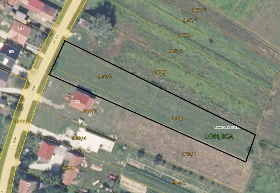 Prodajem građevinsko zemljište u Lonjici, dvije parcele (ko 948/2 i 948/4), ukupne površine 3.377m2 za 35.000€.