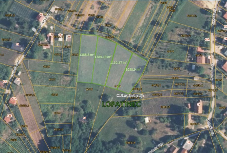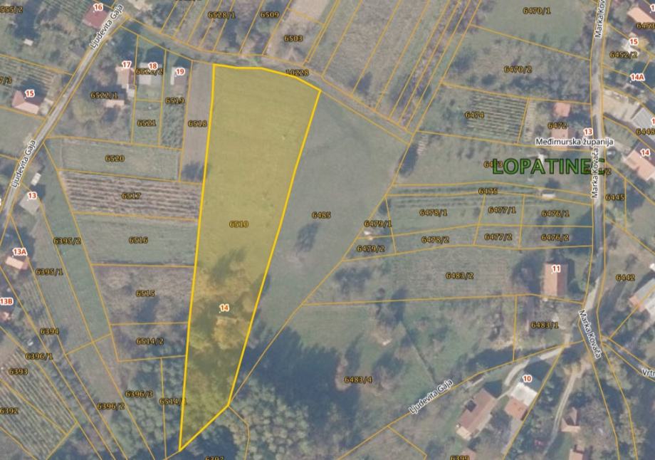 Zemljišta su u ulici Ljudevita Gaja, okružena zelenilom- čestice 6485 (3917m2) i 6510 (5740m2).