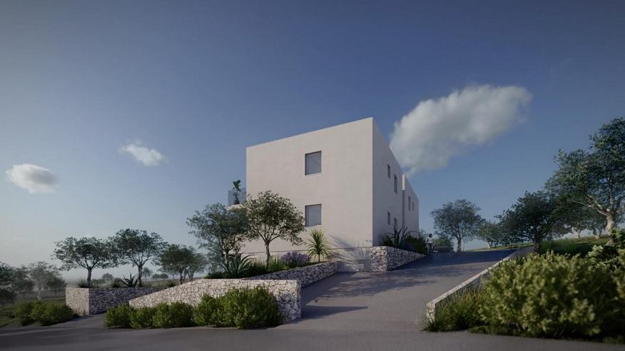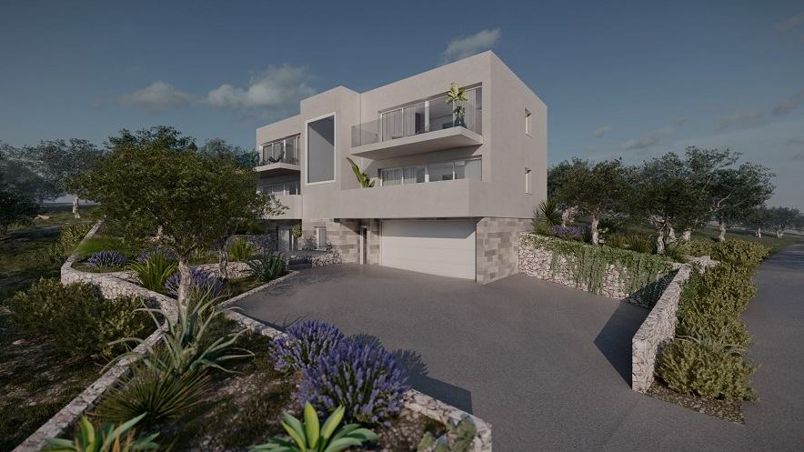 Prodaje se zemljište površine 650 m2 s pravomoćnom građevinsko dozvolom i plaćenim svim doprinosima za višestambeni objekt s 5 apartmana, u mjestu Lun na otoku Pagu.