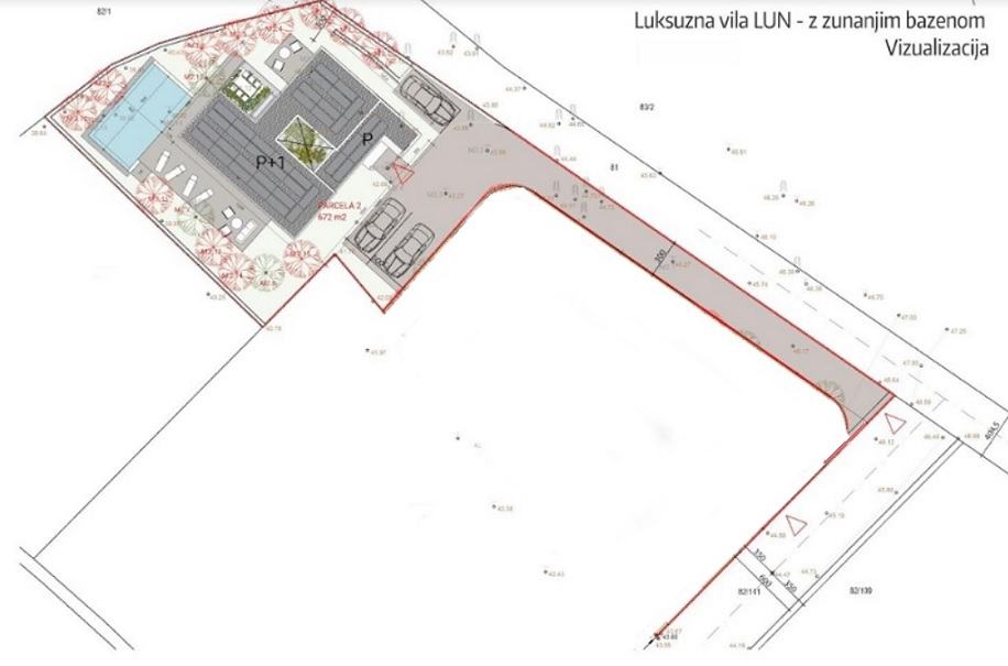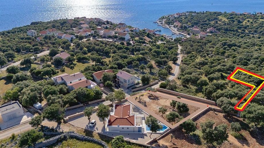 Građevinsko zemljište, Lun, 672 m2, građ. dozvola za vilu s bazenom