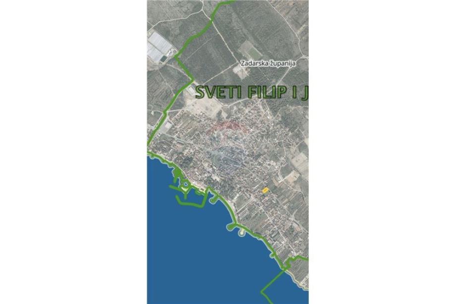 Prodaje se građevinsko zemljište u Sv. Filipu i Jakovu, kod Biograda na moru, uz Jadransku magistralu, pravkutnog oblika okrenuto prema moru po dužini, od kojeg je udaljeno oko 300m te se sa objekta, sa prvog kata, koji se sagradi, svakako vidi i samo more.