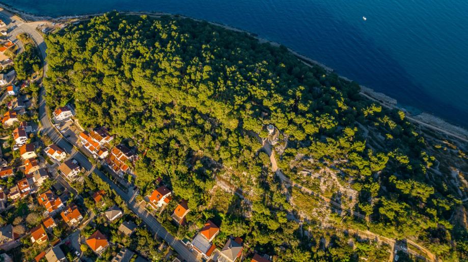 Posredujemo kod prodaje građevinskog zemljišta za gradnju obiteljske kuće, zemljište površine 581 m2, od centra grada i mora zračne linije udaljeno cca 260 m.