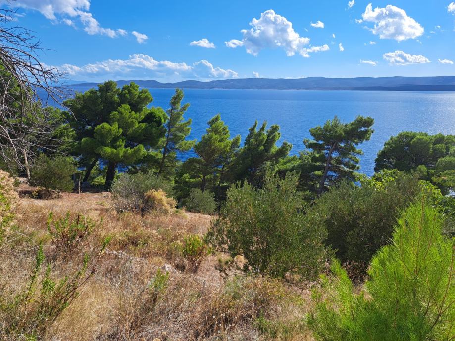 The plot is located directly below the main road and stretches towards the sea with a length of 100 m and a width of 42 meters, which ensures spaciousness, privacy and a magnificent view of the Adriatic Sea.
