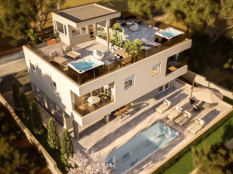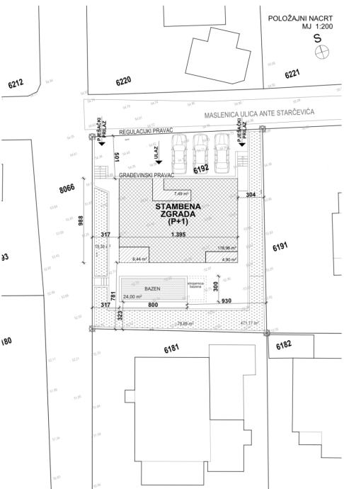 Atraktivno građevinsko zemljiste sa panoramskim otvorenim pogledom samo 700m od mora i 200m od centra Maslenice i dućana. Uz zemljište je sva dostupna infrastruktura, početak gradnje moguć sutra. Zgrada je projektirana za 3 apartmana sa prostranim terasama na krovu sa prekrasnim otvorenim pogledom na more, 3 parkirna mjesta i bazenom za apartman u prizemlju.