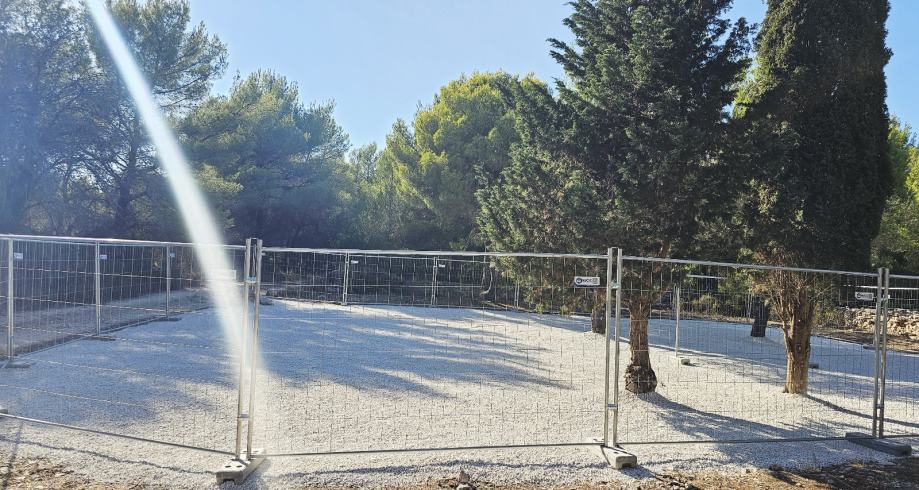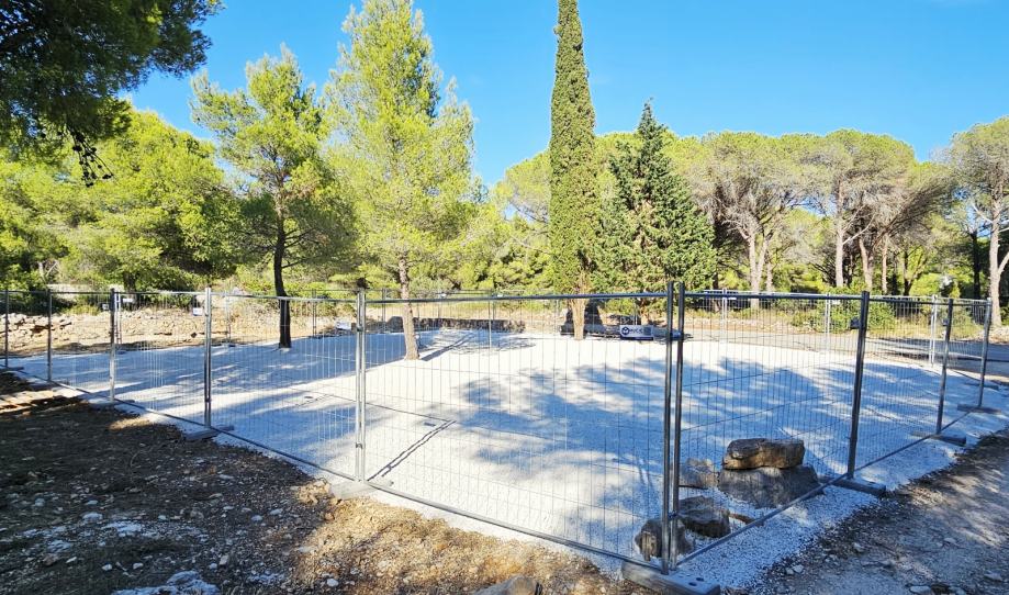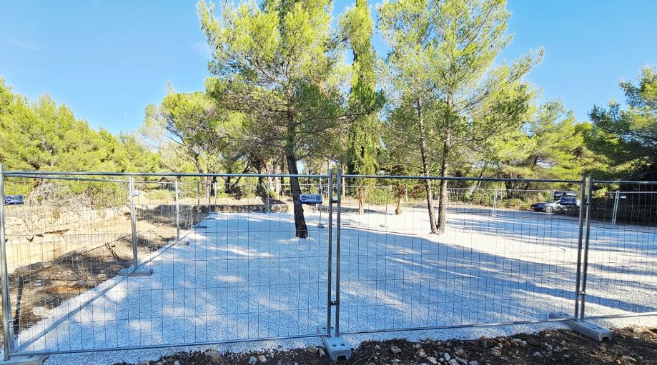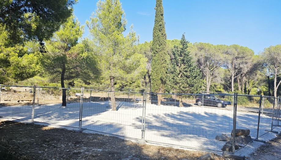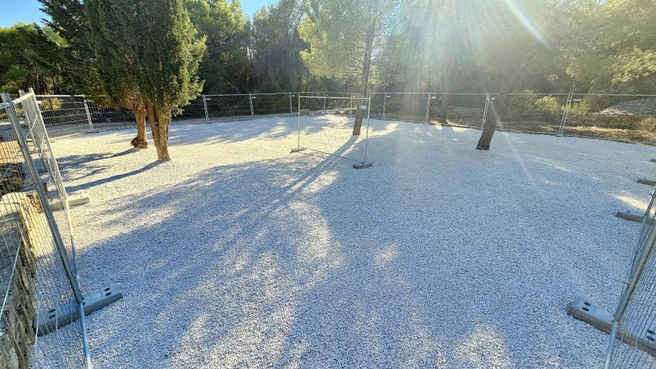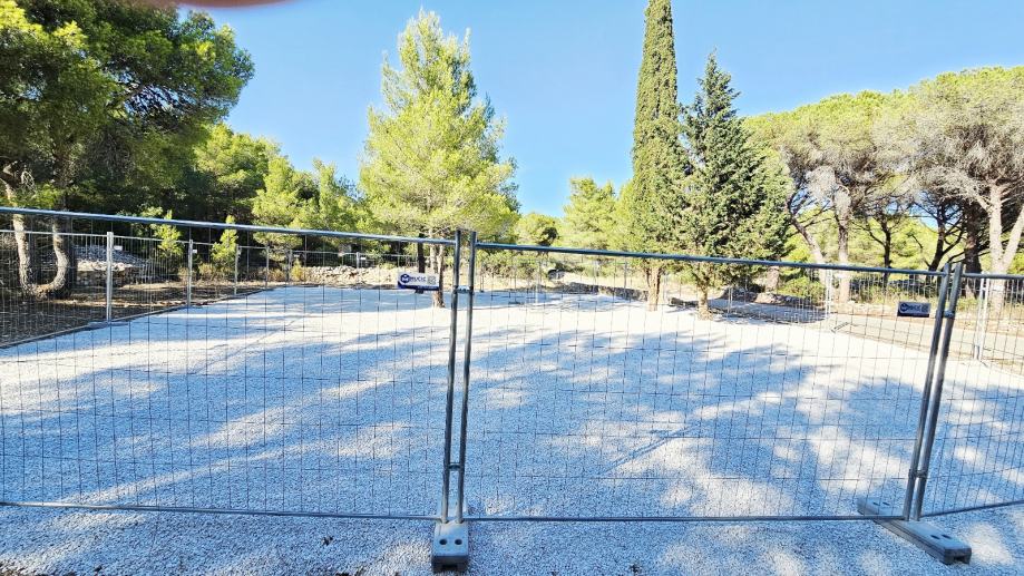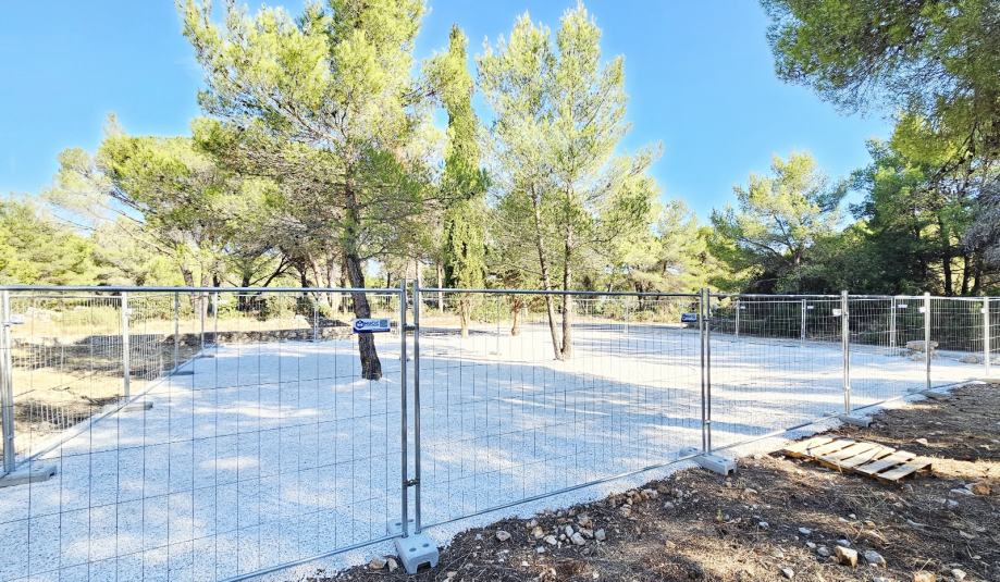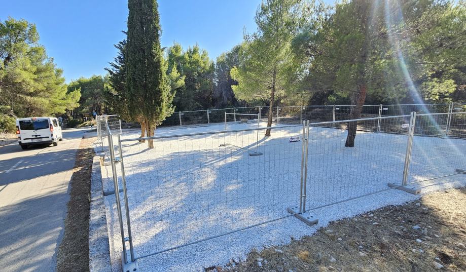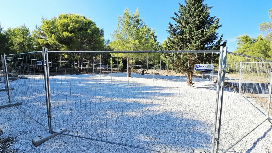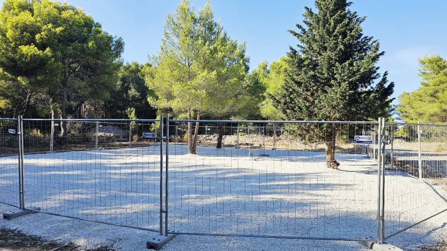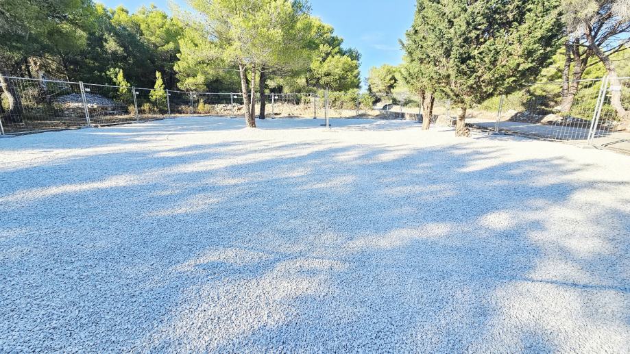 Zemljište je ograđeno, podloga bijeli ukrasni Brački kamen.