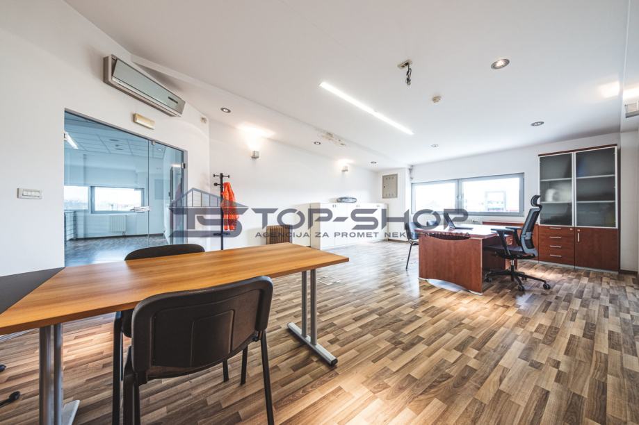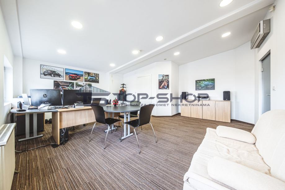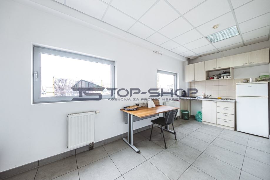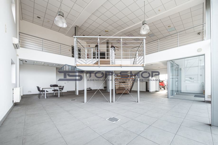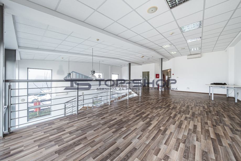 Ima veliki izložbeni prostor, kuhinju, ostavu, 2 ureda, kupaonicu.