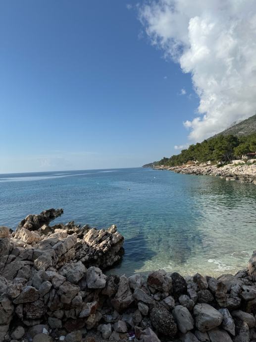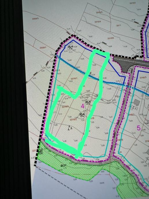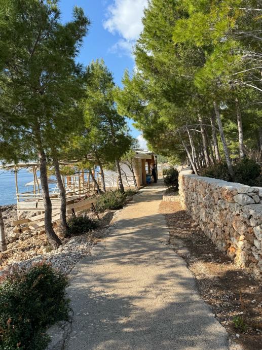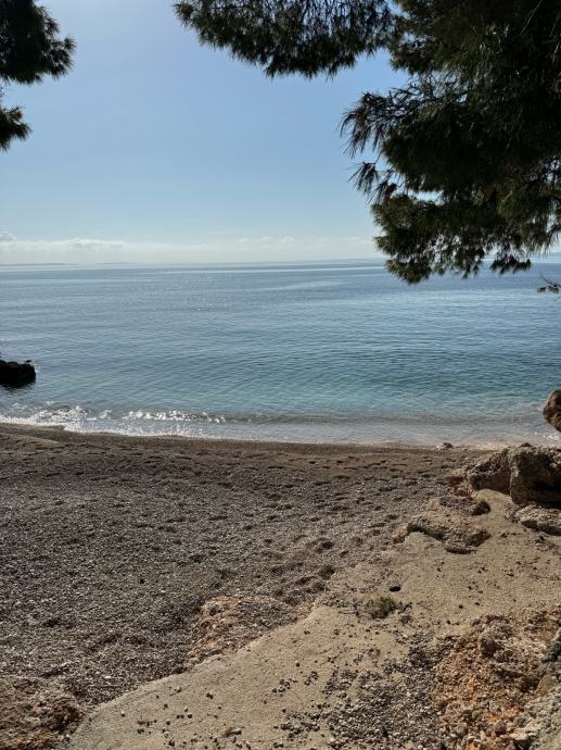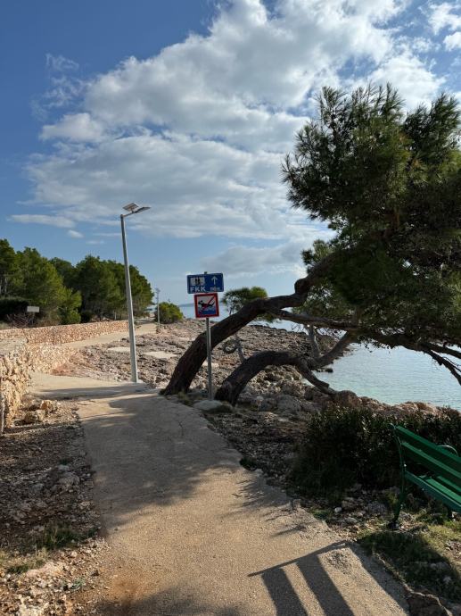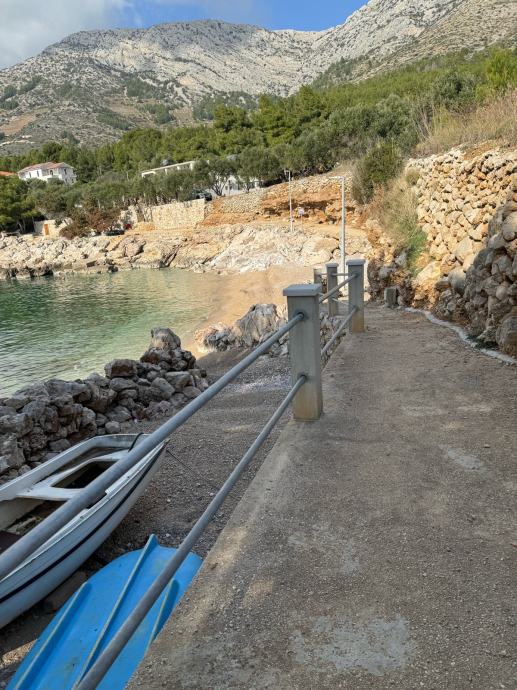 Zemljište je uz obalu, 3257 m2 s mogućnošću stambene gradnje (na slici iznad svijetloplave linije - 100 metara od mora).