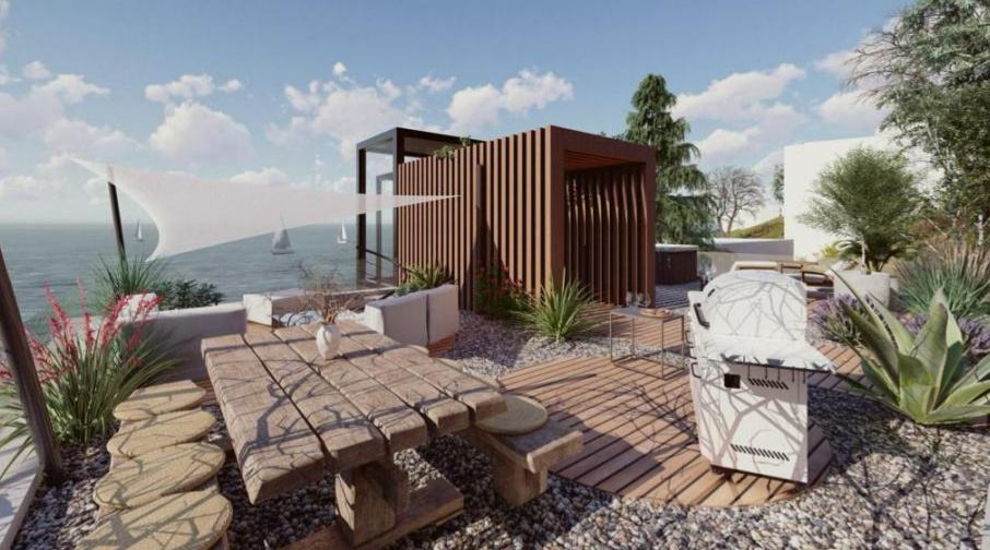 Prema idejnom projektu moguća je gradnja 3 luksuzna objekta s ukupno 18 apartmana. Kaskadni oblik parcele pruža panoramski pogled na more sa svake etaže.