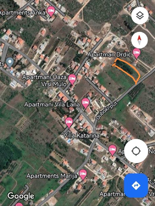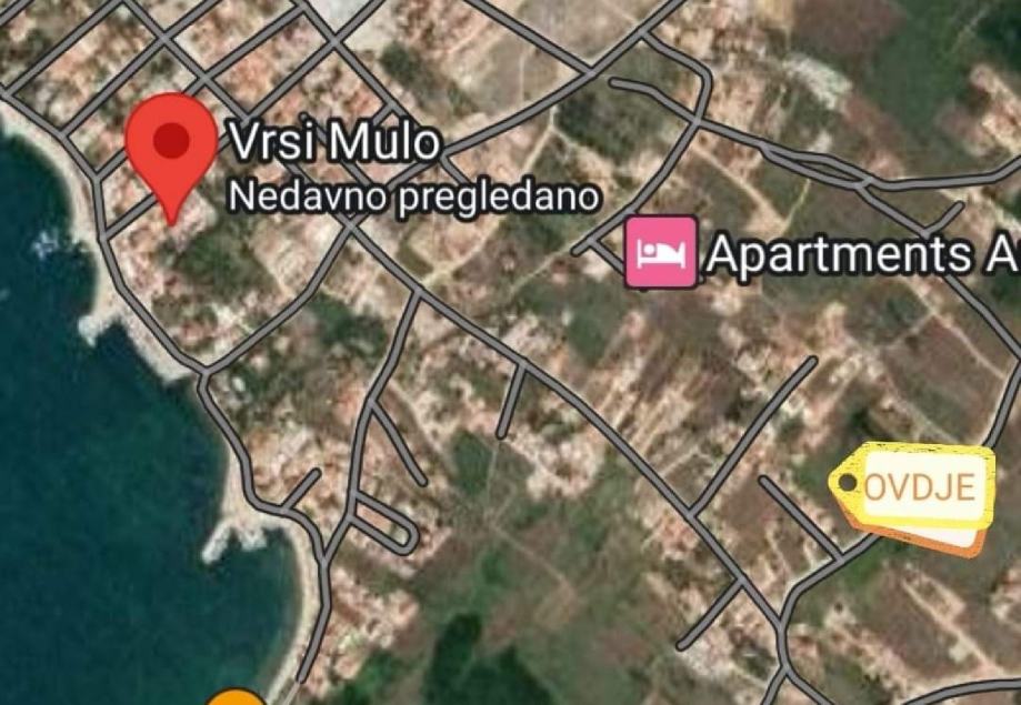 Zemljišta se nalaze u mjestu Vrsi Mulo cca 500 m udaljena od mora i 900 m od uređene gradske plaže (na fotografijama), te je sa zemljišta moguć pogled na more.