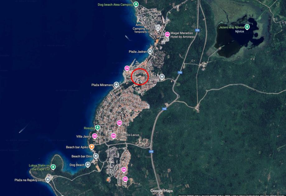 Udaljenost od rive/mora: cca 160 m zračne linije