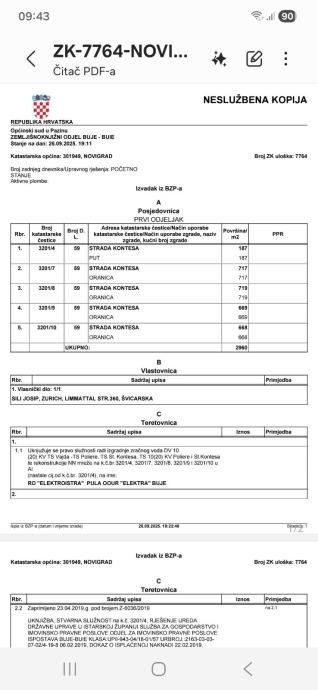 • Vlasništvo: Uredno, 1/1, bez tereta koji bi kočili gradnju.