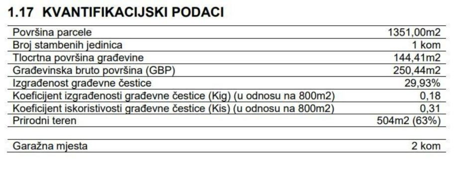 - Građevinska površina: 588 m² (urbanističko pravilo 2.1)