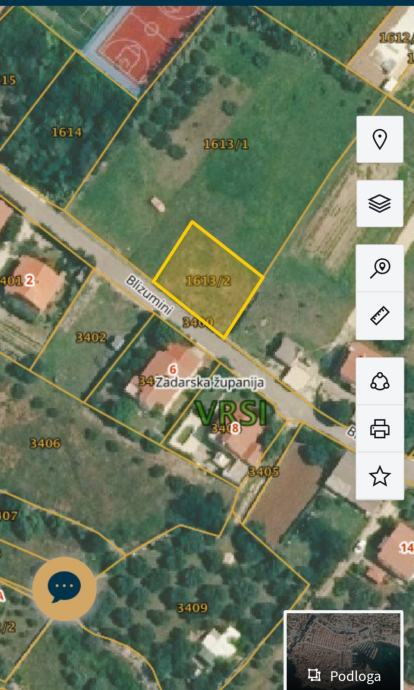 Građevinsko zemljište 82.000 eura. Zemljište se nalazi u centru Vrsi u blizini pošte, Općine, dječjeg vrtića, ljekarne, liječničke ambulante i stomatologa. Zemljište je dimenzija 25 x 20 metara. Širina do ulice je 25 metara. Zemljište ima pristup na asfaltni javni put. Priključak vode, kanalizacije i struje je odmah ispred zemljišta.Zemljište je ravno U stambenoj je zoni. Mogućnost izgradnje tlocrtno 30 posto. Moguće je izgraditi urbanu vilu s bazenom. Ili objekt s dvije stambene jedinice ili dvojni objekt. More je na udaljenosti oko 2000 metara. Kčbr. čestice je 1613/2 Ko Vrsi.