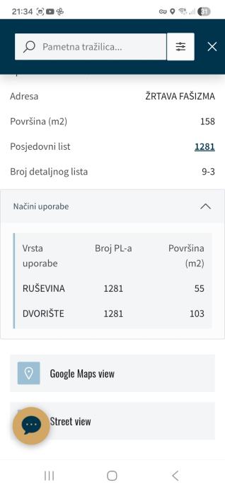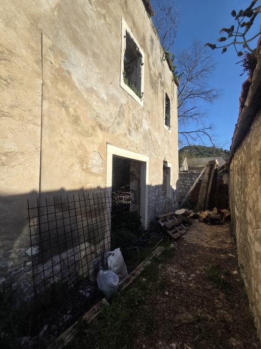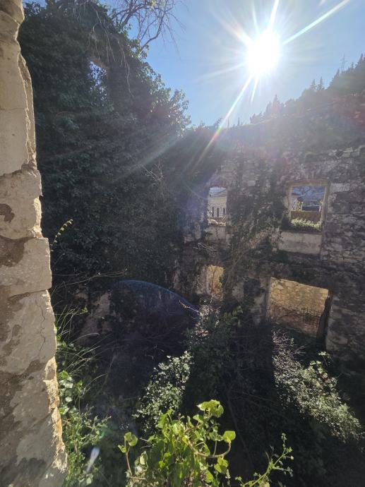 Prodaje se građevinsko zemljište stambene namjene površine 158 m². Na parceli se nalazi ruševna kamena građevina bez krova i unutarnjih instalacija, vidljiva na fotografijama - zidovi su djelomično očuvani, ali objekt je u potpunosti neupotrebljiv u trenutnom stanju.
