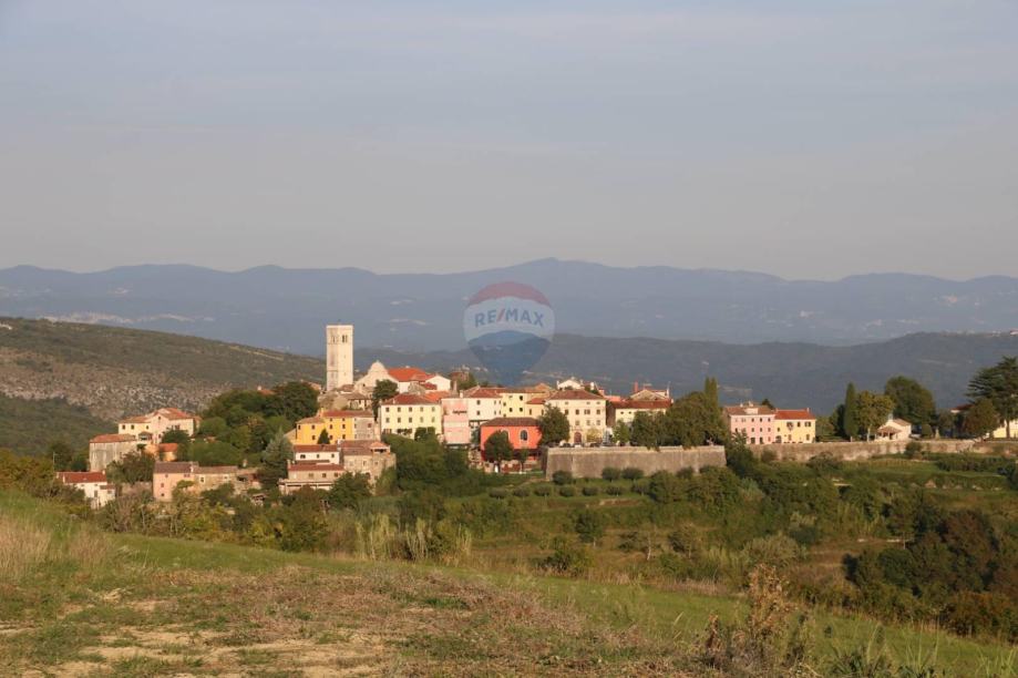 U samoj blizini Oprtlja, na vrhu brežuljka s kojeg puca predivan pogled na okolne brežuljke smješten je ovaj veliki građevinski teren ukupne površine 2 hektara. Uz građevinski teren u prodaji je i 6000m2 negrađevinskog zemljišta. Ovo zemljište je puno potencijala budući da se nalazi u području koje je poznato po lijepim vidicima i izvrsnim agroturizmima. Istra je poznata i po prelijepim srednjevjekovnim gradićima od kojih su najpoznatiji Motovun i Grožnjan koji su na 15 minuta vožnje udaljeni od ovog terena. Prema projektu dozvoljena je gradnja 12 vila za odmor i popratne infrastrukture.