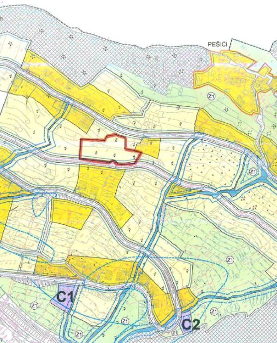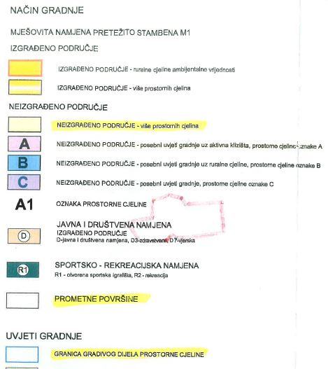 Parcela je unutar građevinskog područja mješovite namjene/žuta zona (stanovanje ili tihi obrt koji može zauzeti do 50% površine objekta, a ostalo stambeno)