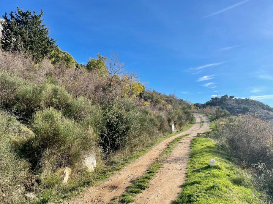The macadam road in front of the plot is intended to be slightly widened, about 1.5 m along the southern edge