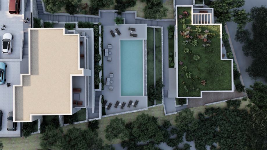 Za ovu parcelu izrađen je idejni arhitektonski projekt kojim je predviđena izgradnja 2+2 kaskadne dvojne vile, to jest ukupno 4 stambene jedinice, svaka bi imala neto izgrađenu površinu između 191-205 m², dakle ukupna izgrađena površina je 800 m².