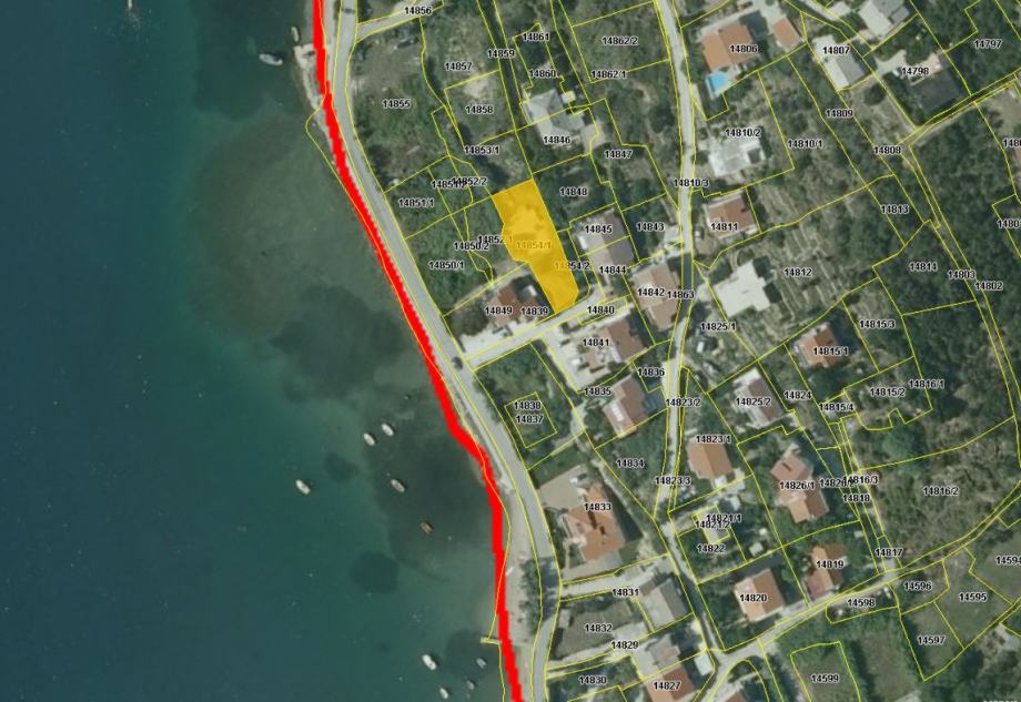 Izgrađen objekt, podrum i ploca, ima pristupni put te se nalazi samo 30m od mora.
