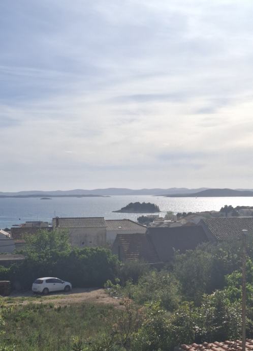 PAKOŠTANE - GRAĐEVINSKO ZEMLJIŠTE u centru mjesta s pogledom na more ukupne površine 794m2